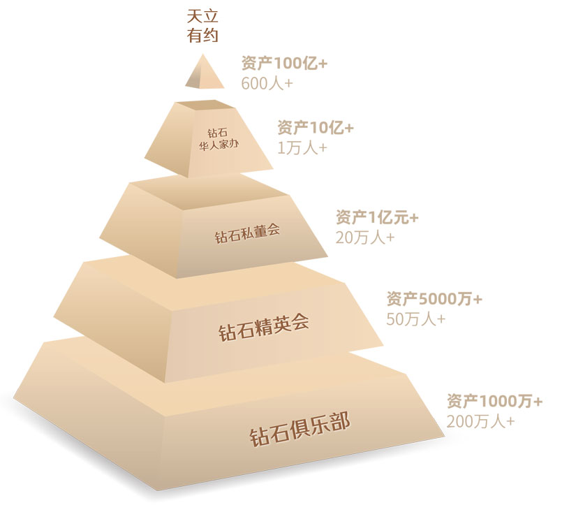 钻石婚恋圈层体系涵盖以下五大层级:钻石俱乐部、钻石精英会、钻石私董会、钻石家族办公室、天立有约。